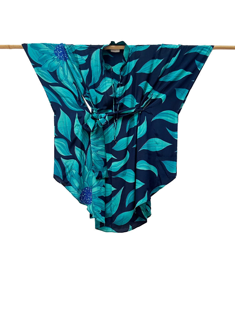 Each piece is unique. The sarees are gleaned during travels, then sewn by hand in Qatar by local artisans.