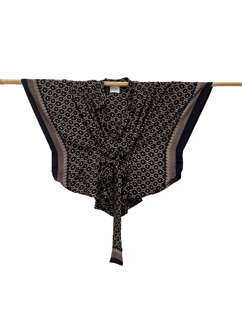 Each piece is unique. The sarees are gleaned during travels, then sewn by hand in Qatar by local artisans.
