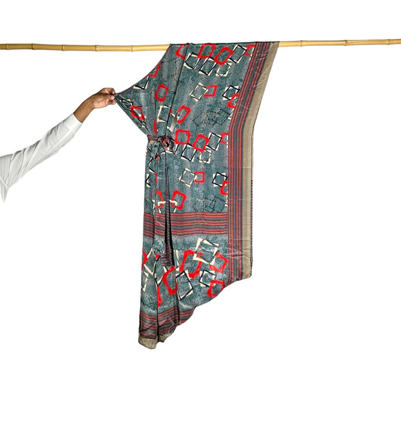 Each piece is unique. The sarees are gleaned during travels, then sewn by hand in Qatar by local artisans.