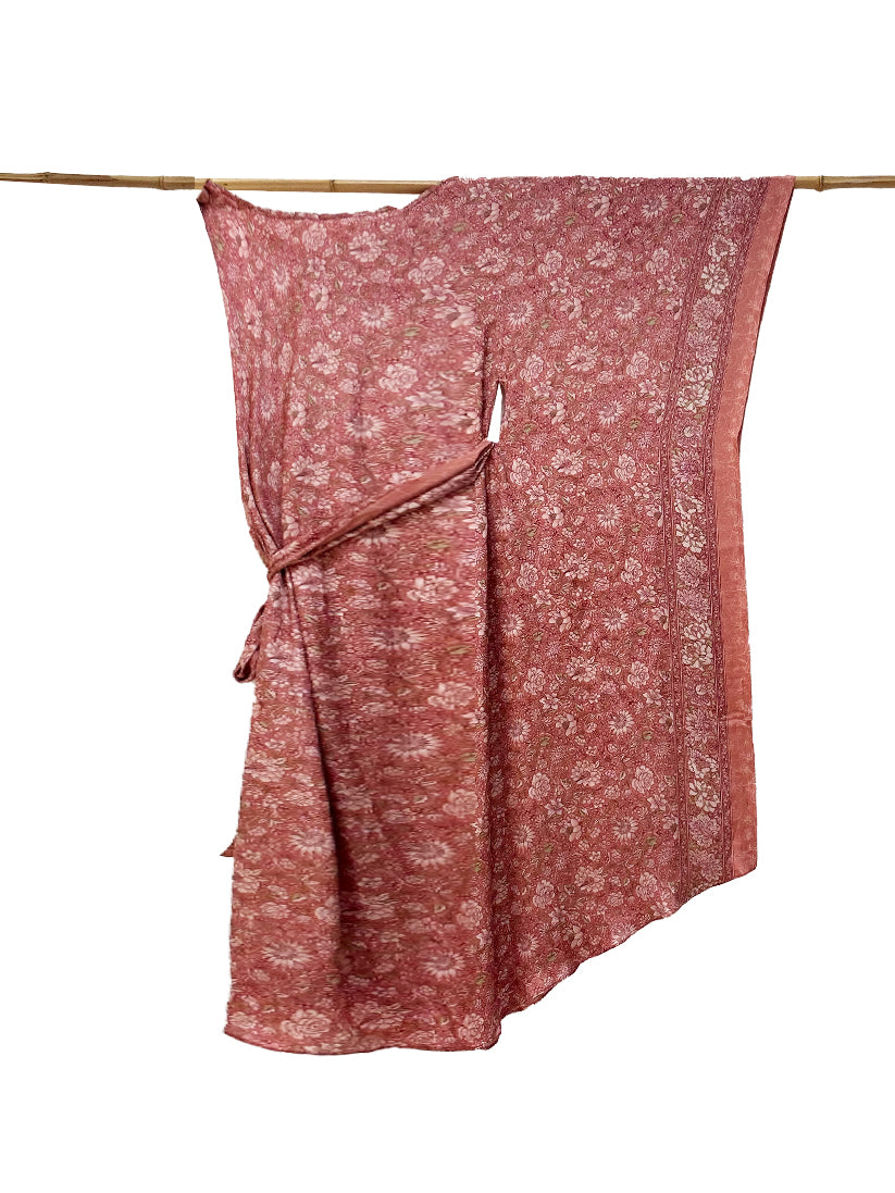 Each piece is unique. The sarees are gleaned during travels, then sewn by hand in Qatar by local artisans.