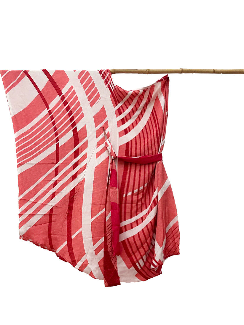 Each piece is unique. The sarees are gleaned during travels, then sewn by hand in Qatar by local artisans.