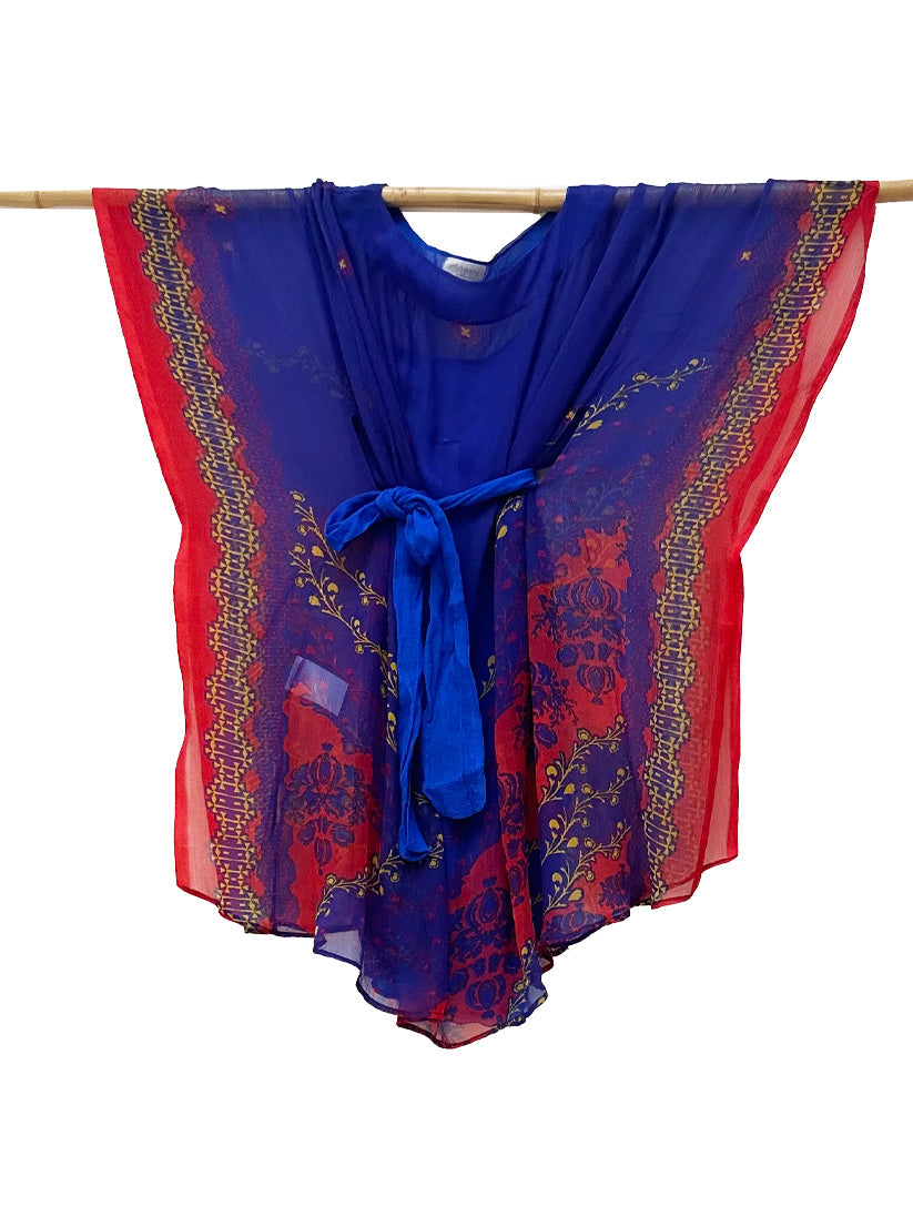 Each piece is unique. The sarees are gleaned during travels, then sewn by hand in Qatar by local artisans.