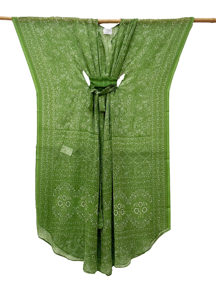 Each piece is unique. The sarees are gleaned during travels, then sewn by hand in Qatar by local artisans.