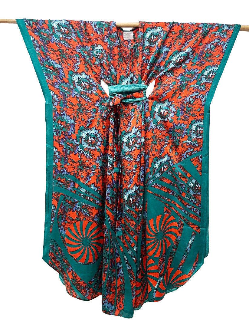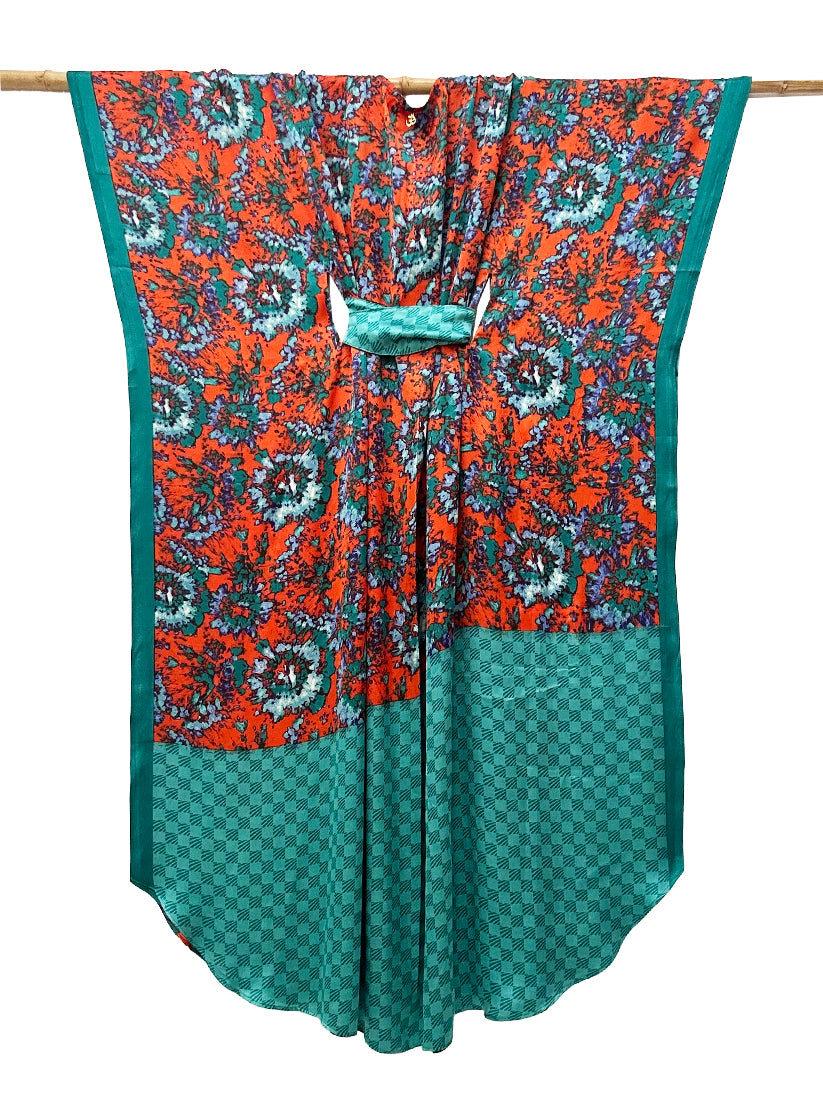 Each piece is unique. The sarees are gleaned during travels, then sewn by hand in Qatar by local artisans.