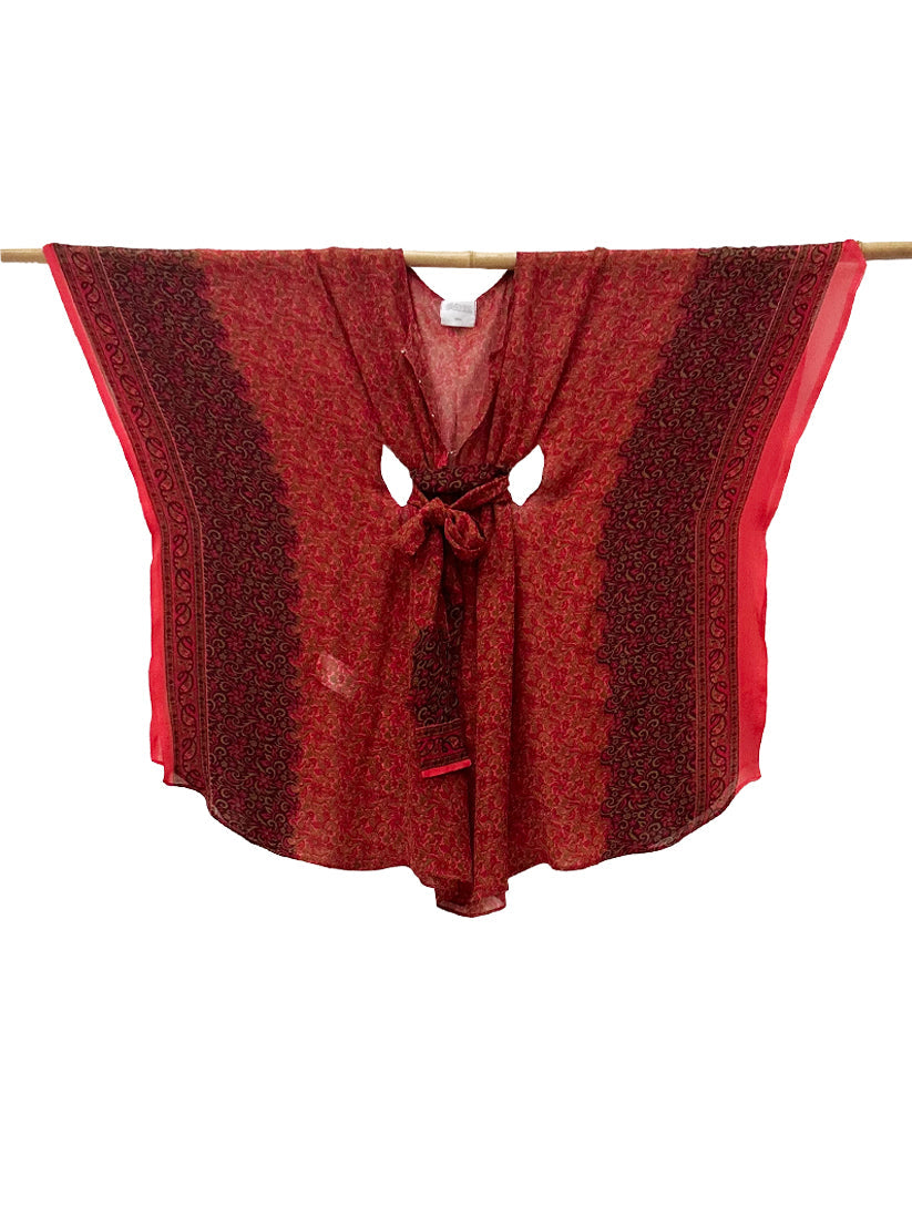 Each piece is unique. The sarees are gleaned during travels, then sewn by hand in Qatar by local artisans.